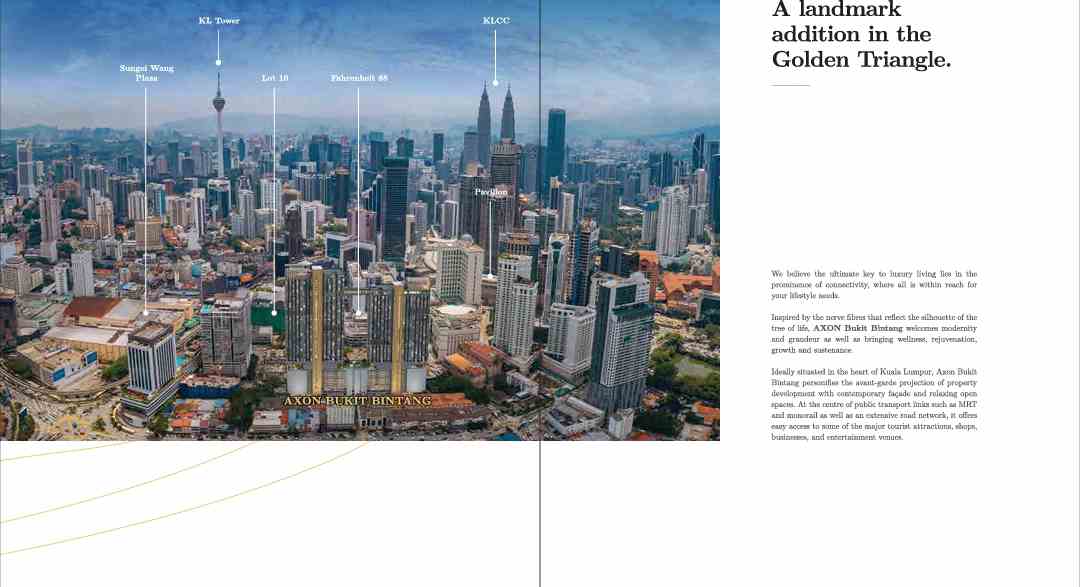 Axon Bukit Bintang is a new luxury serviced residence development project comprising two towers up to 45-storey tall. The development is located in Bukit Bintang, the entertainment and shopping district in the centre of Kuala Lumpur.
