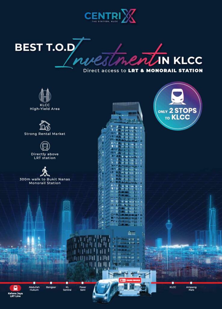 Centrix The Station KLCC is a signature 47-storey integrated mixed development tower strategically built above Kuala Lumpur’s Dang Wangi LRT station, offering seamless urban living with premium amenities and direct transport access.